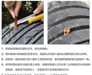 目前常用的方法就是貼片內(nèi)補法,先檢查輪胎的破損位置,然后仔細平整破損處,在孔洞周圍涂上膠水,將專用的橡膠貼片貼在破損處并壓緊牢固,然后涂上一層保護膠,完成輪胎的修補工作,這種方法與自行車上常用的輪胎修補方法基本一致。這種方法的缺點是,損壞的部件容易被雨水等污染物腐蝕,只有輪胎內(nèi)部才能修復(fù),輪胎完成后,應(yīng)進行動態(tài)平衡校準(zhǔn)。但通常效果很好,價格不超過100元。
