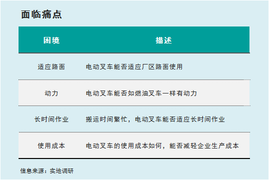 對(duì)陶瓷行業(yè)而言,壓力不僅來(lái)自市場(chǎng)銷售,成本高啟,還有環(huán)保問題。該企業(yè)同樣存在這樣的難題,一邊要承受市場(chǎng)的壓力,一邊要綠色生產(chǎn),推動(dòng)技術(shù)和設(shè)備的更新升級(jí)。在該企業(yè)決定改變以燃油叉車為主要搬運(yùn)設(shè)備時(shí),也考慮了很多問題。